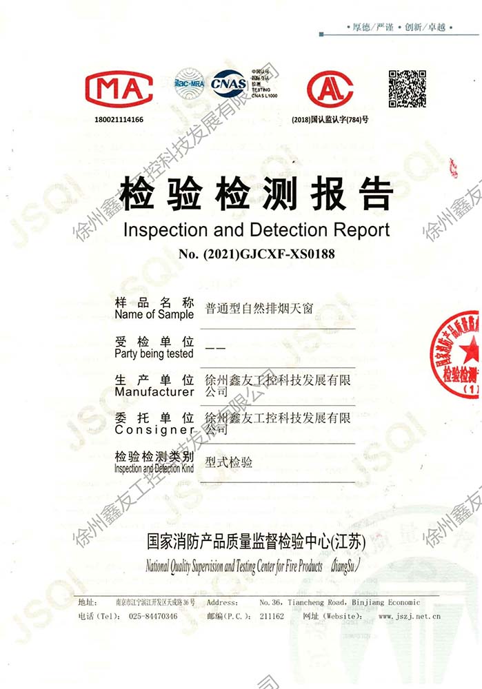 普通型電動排煙天窗檢測報告188