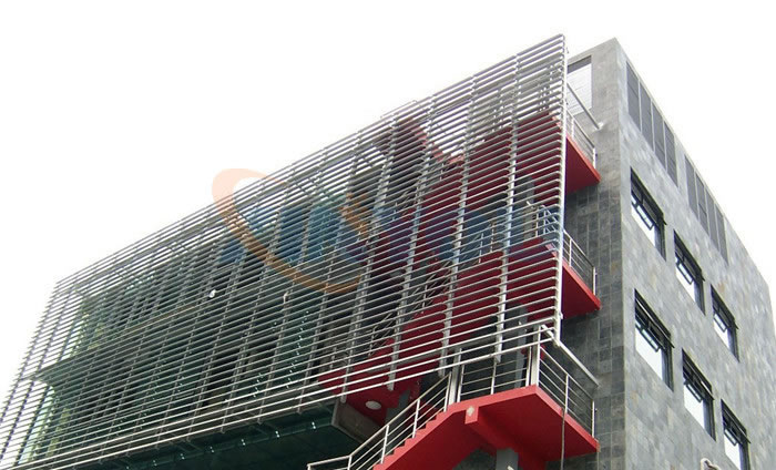 梭型百葉窗百葉采用中空結(jié)構(gòu),葉片呈梭形,雙弧面,具有強度高、跨度大的特點,通過與玻璃幕墻的配合,可實現(xiàn)遮陽、采光、裝飾建筑物的效果。梭型百葉窗通過電機帶動葉片的旋轉(zhuǎn),從而改變室內(nèi)采光效果,達(dá)到遮陽節(jié)能的目的。