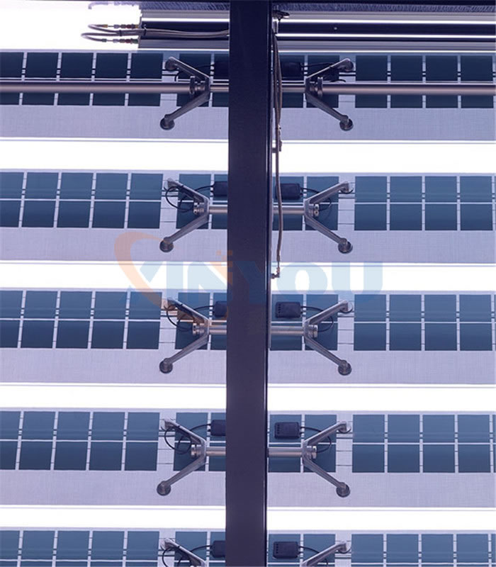 光伏百葉,能夠有效的將太陽能轉化為電能、動能,同時百葉滿足日常的采光、遮陽這樣功能。光伏百葉環(huán)境控制單元可以預置對風、雨、光、溫、煙等感應參數(shù),使之通過外置感應器,對超限值作出及時回應進而控制百葉動作,完全實現(xiàn)了綠色環(huán)保節(jié)能的建筑理念。