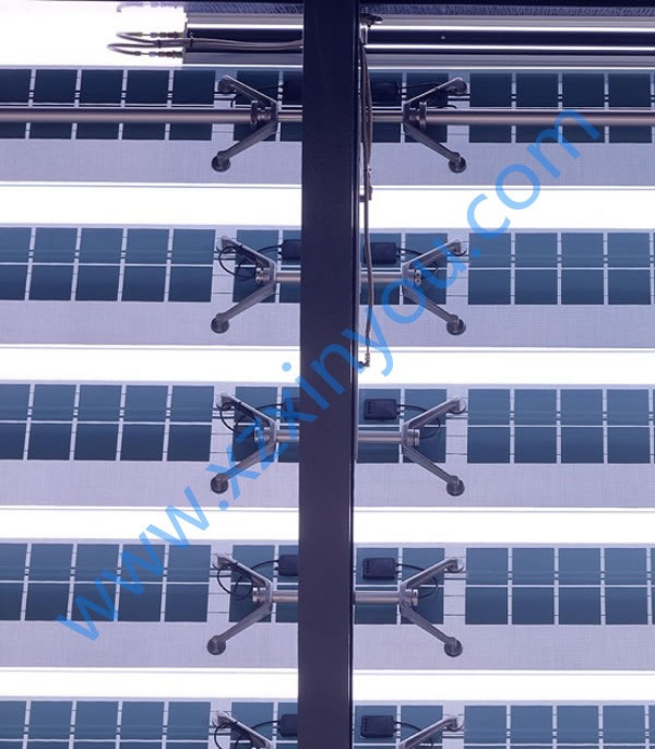 光伏百葉,能夠有效的將太陽能轉(zhuǎn)化為電能、動(dòng)能,同時(shí)百葉滿足日常的采光、遮陽這樣功能。光伏百葉環(huán)境控制單元可以預(yù)置對(duì)風(fēng)、雨、光、溫、煙等感應(yīng)參數(shù),使之通過外置感應(yīng)器,對(duì)超限值作出及時(shí)回應(yīng)進(jìn)而控制百葉動(dòng)作,完全實(shí)現(xiàn)了綠色環(huán)保節(jié)能的建筑理念。