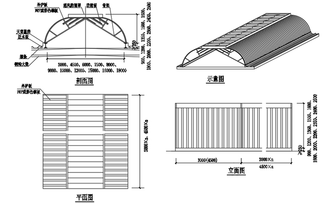 3. 通風天窗側面外護板為彩鋼壓型板,泛水包邊板用彩鋼板折彎而成。
